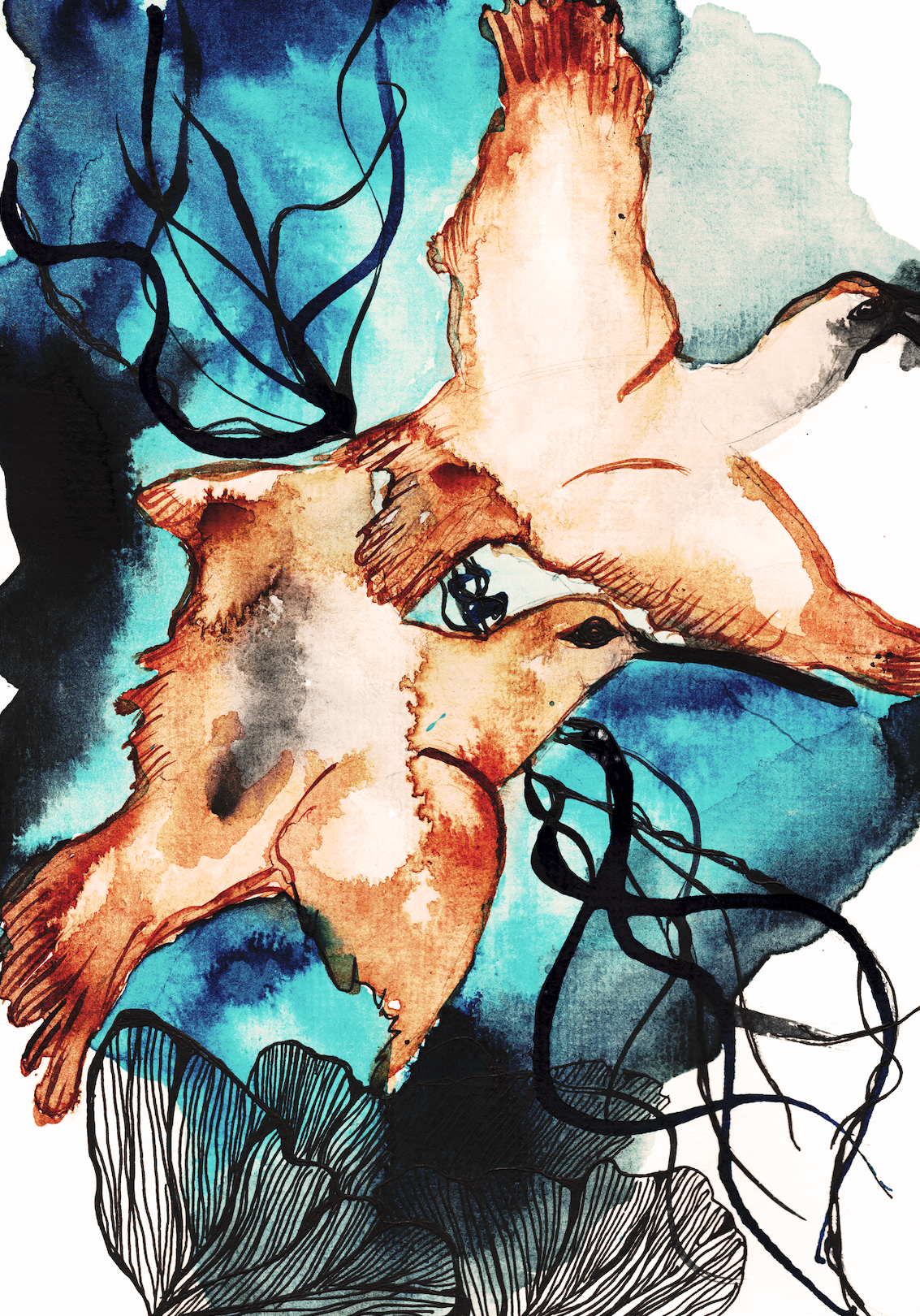 Flock, Majestic birds in flight - Ink, watercolour and mark making fine art prints on Ilford Galerie Textured Cotton Rag matte 310gsm paper. Prints are available in sizes A4, A3 and A0