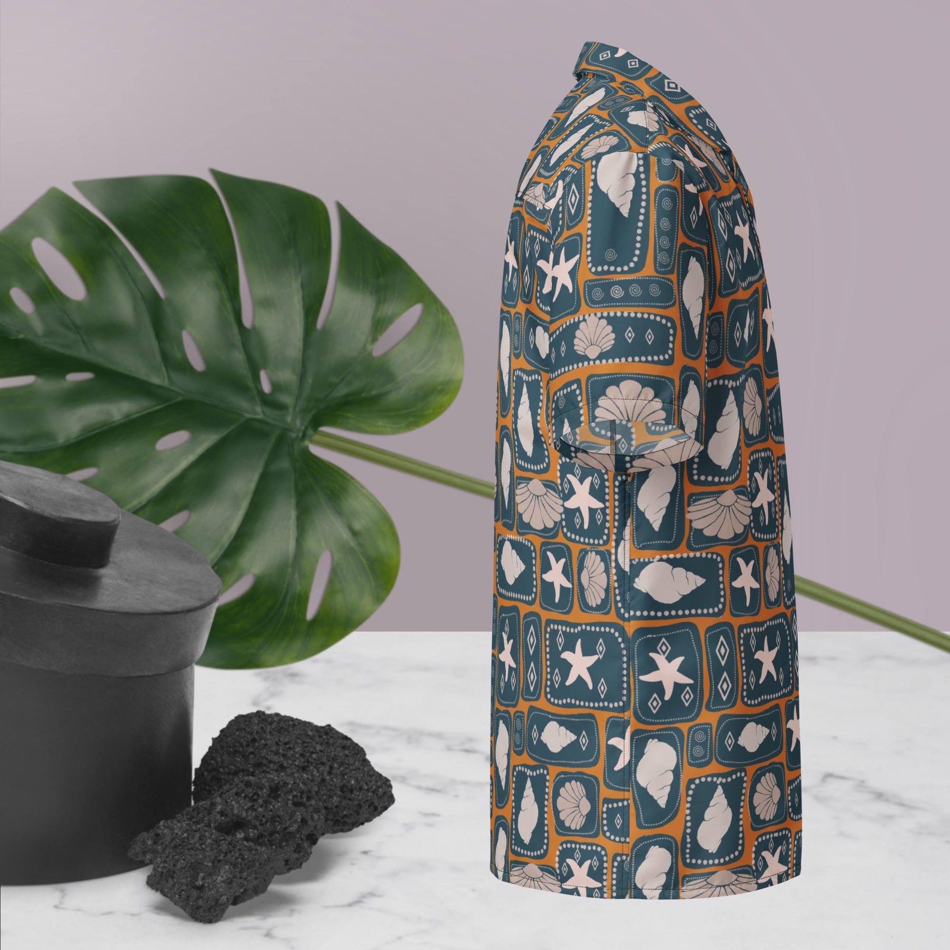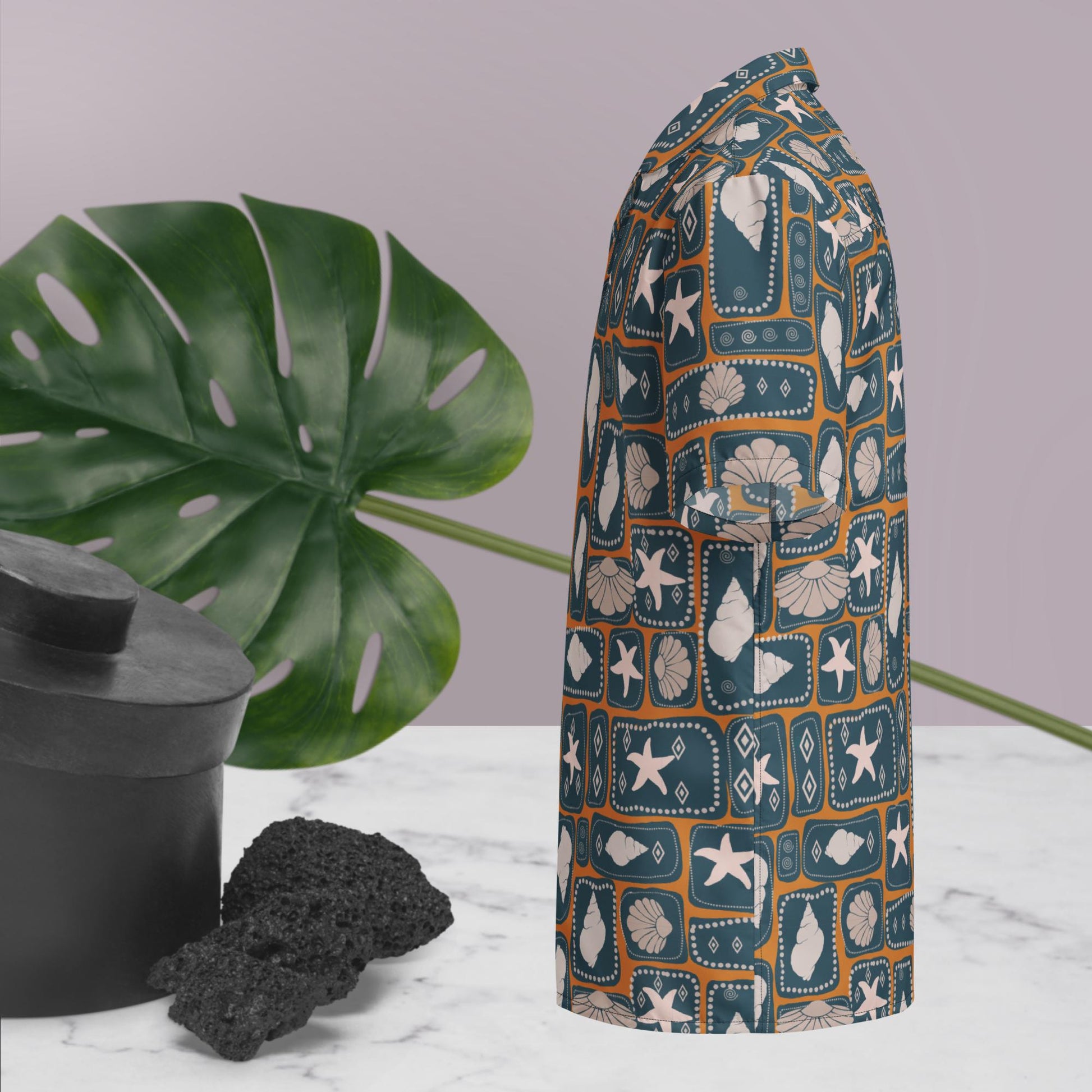 Meraki Blocks in Tangerine Button Shirt